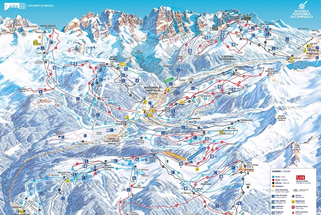 A fantasztikus alpesi hangulatú városkában, Madonna di Campiglio-ban, melyet az olaszok a Brenta Dolomitok gyöngyszemének neveznek, sétálóutcák, üzletek, valamint vendéglátó- és szórakozóhelyek sokasága várja az ide látogató vendégeket. A sítereprészekre önálló síbérletek is válthatóak kedvezőbb áron.