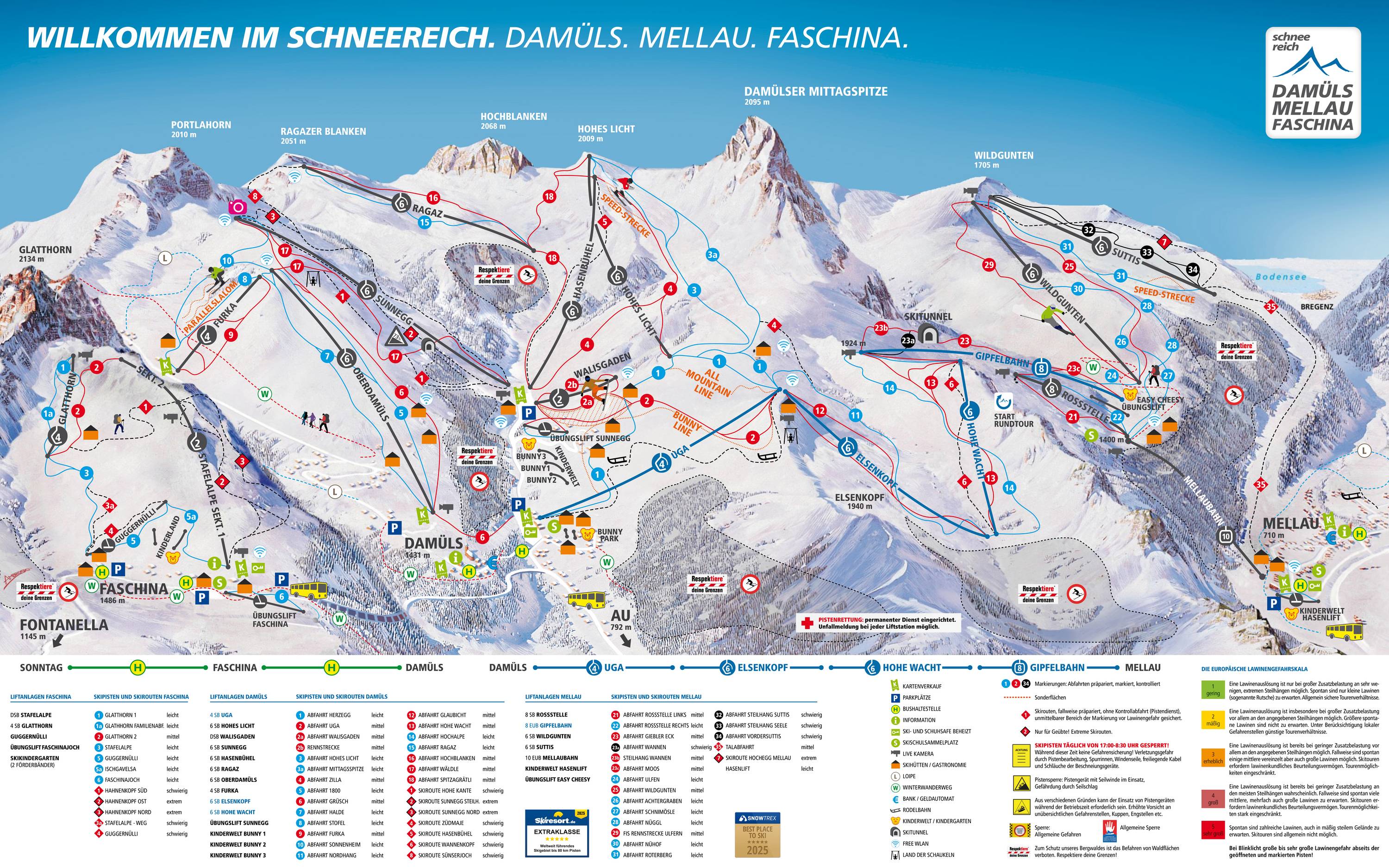 Damüls már többször megkapta a "Leghóbiztosabb falu" címet. Mellau tradicionális osztrák síterep, modern felvonókkal. A két síterepet a 2009/10-es szezonban kötötték össze egy 6 személyes kabinos felvonóval.