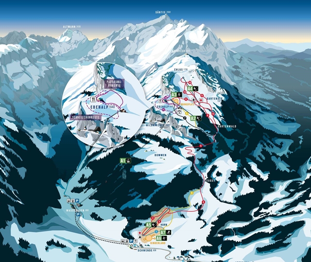 Ebenalp - Wasserauen / Schwende Svájc egy síterepe, melynek legmagasabb pontja 1720 méter. 872 méter szintkülönbséggel és 10 km sípályával rendelkezik, melyből 1,5 km fekete, 7,5 km piros, 1 km kék. A pályarendszert összesen 7 darab felvonó szolgálja ki, közülük 1 nagykabinos lift, 6 húzólift.