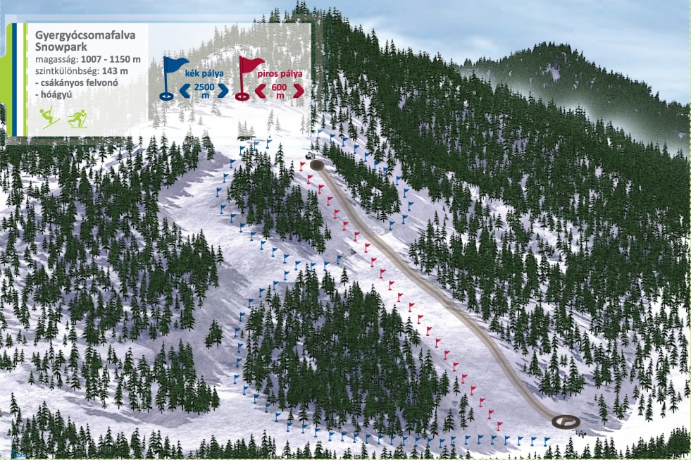 A pálya 2009-ben lett kialakítva és folyamatos fejlesztés alatt áll. A lesiklópályákhoz való feljutást egy 680 méteres csákányos felvonó biztosítja, ami 1007 méterről indul és 1150 méter magasra visz fel. Jelenleg három lesiklási lehetőség van, egy 650 méteres piros jelzésű , egy 1100 méteres illetve egy 1400 méter hosszú kék jelzésű pálya. A felvonó mellett található egy 60 méteres totyogó, ahol a kezdők barátkozhatnak a lesiklás örömeivel.