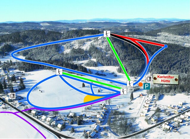 Karlstift Ausztria északi részén, a cseh határ mentén található kis terep. A kicsiket külön gyerekvilág várja, ahol szórakozva és biztonságosan tehetek meg első lépéseiket és csúszásaikat sílécen, amíg a család többi tagja a piros és fekete pályákat is élvezheti.