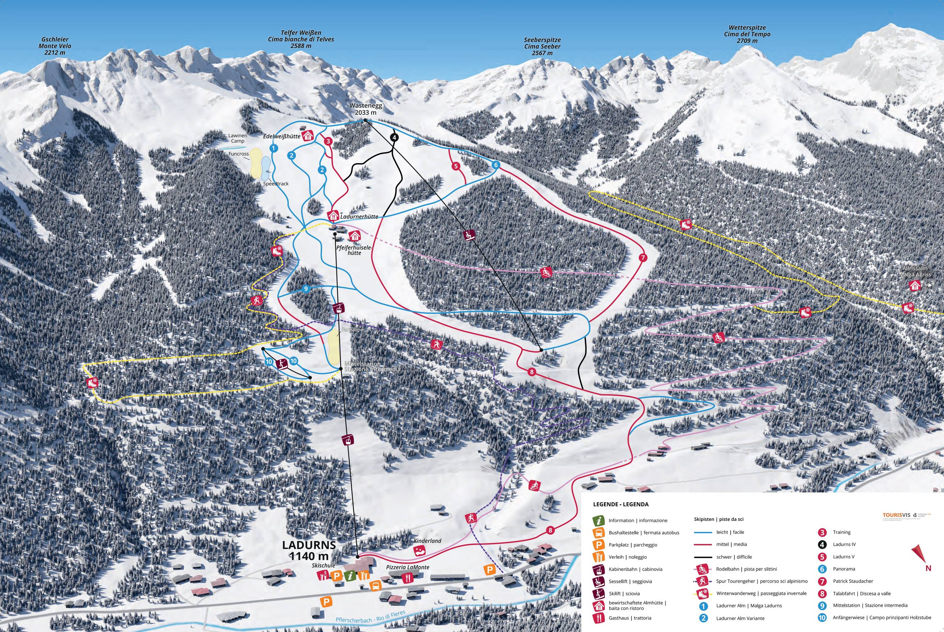 Ladurns Olaszország egy síterepe, melynek legmagasabb pontja 2030 méter. 890 méter szintkülönbséggel és 18 km sípályával rendelkezik, melyből 1,2 km fekete, 8,4 km piros, 8,4 km kék. A pályarendszert összesen 3 darab felvonó szolgálja ki, közülük 1 kiskabinos lift, 1 ülőlift, 1 húzólift.