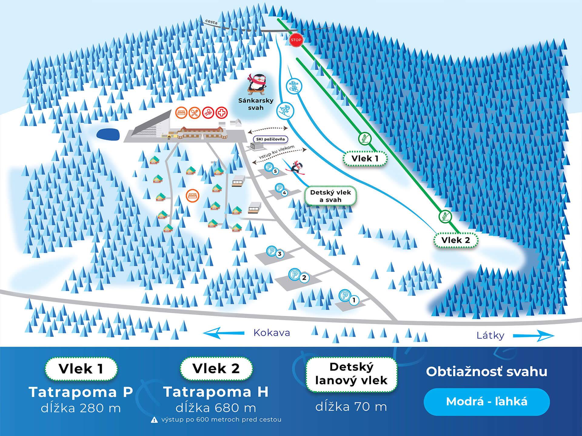 A Hotel Zerrenpach szomszédságában lévő síközpont a Vepor hegységben található, 25 km-re Detvától. Enyhe lejtésű, hóágyúzott sípályáinak összhossza 1,2 km, ezen kívül egy 70 méter hosszúságú gyermekek, ill. kezdők részére alkalmas pályával is rendelkezik. Azoknak, akik napközben nem érnek rá sízni, a lesiklópályák az esti órákban is rendelkezésre állnak. A központ környékén elegendő természetes hó esetén sífutásra is nyílik lehetőség.