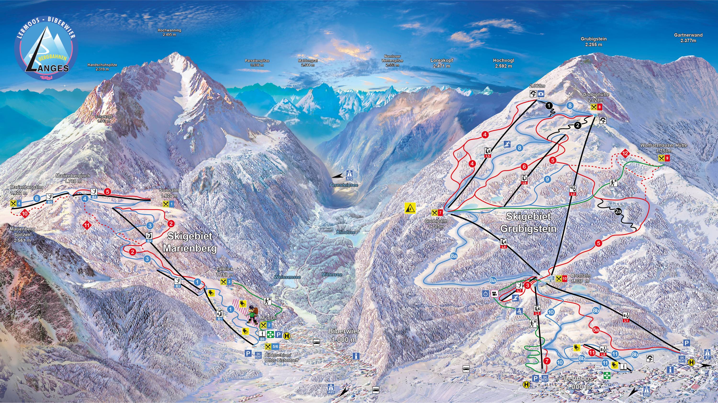 A Lermoos felett emelkedő Grubigstein síterep a német határ mellett található, nem messze Garmisch-Partenkirchentől. Több mint 2100 méter magas csúcsáról gyönyörű kilátás nyílik a környékre. A terepen a legtöbb pálya kék és piros besorolású, melyek között találni szűkebb, erdei lankás lejtőt és széles pályákat egyaránt. Liftjei szinte kivétel nélkül modern és komfortos kabinos vagy ülő felvonók.