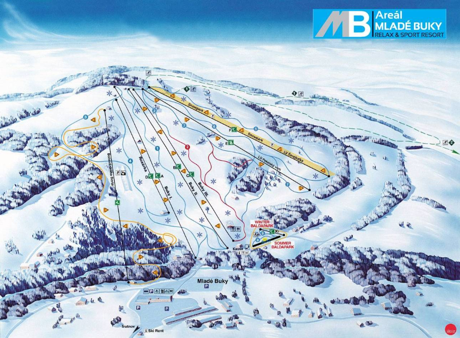 Mladé Buky Csehország egy kisebb síterepe, melynek legmagasabb pontja 670 méter. 120 méter szintkülönbséggel és 5,1 km sípályával rendelkezik, melyből 700 m piros, 4,4 km kék. A pályarendszert összesen 8 darab felvonó szolgálja ki, közülük 2 ülőlift, 6 húzólift.