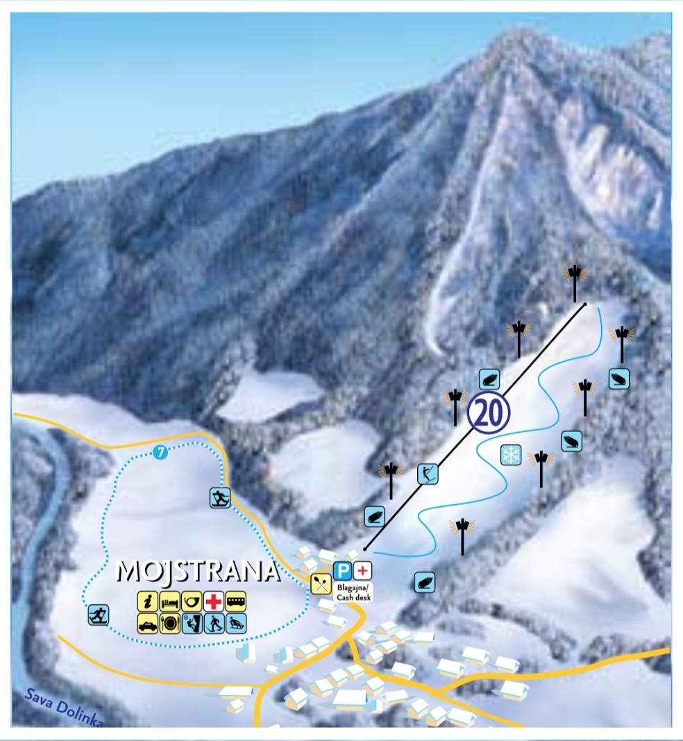 Mojstrana Szlovénia egy kisebb síterepe, 0.6 km kék pályával rendelkezik. A pályát 1 húzólift szolgálja ki. A sípálya mellett van egy kis sífutópálya is. A közelben található nyugat felé Krajska Gora síterepe. Nyáron Mojstrana kedvelt kirándulóhely, itt vezet a völgyben haladó kerékpárút.