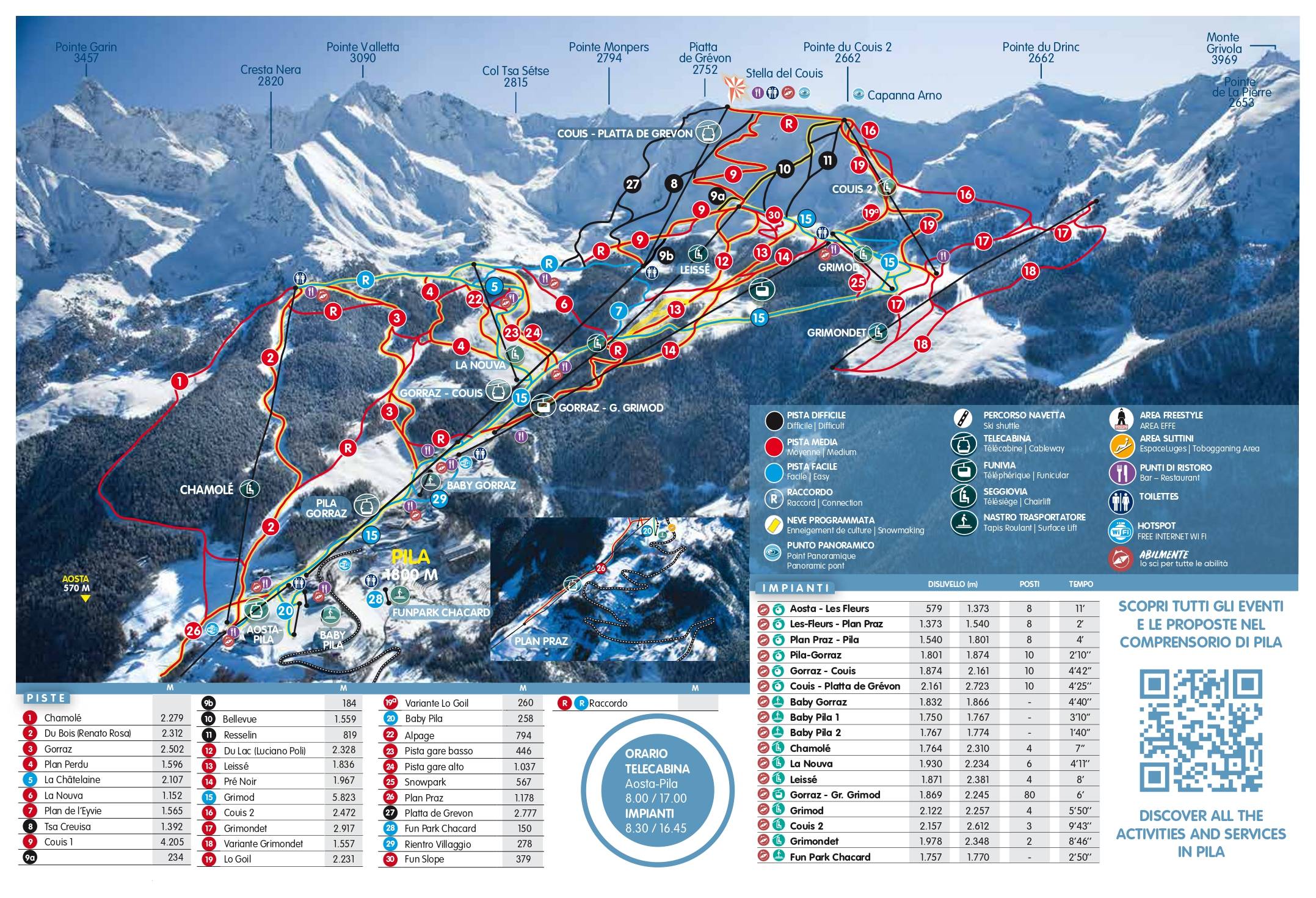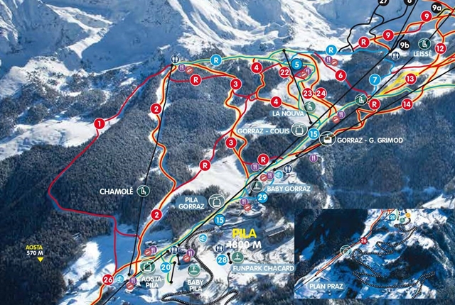 Pila síterepe a Gran Paradiso Nemzeti Park területén található, nem messze a francia határtól és Chamonix-tól. Ez a síterep kedvence lesz a változatos, technikás pályák kedvelőinek, hiszen szinte alig van kék jelzésű lejtő az egész pályarendszerben. Több mint 2700 méter magas csúcsáról pedig lenyűgőző panoráma nyílik a környékre.