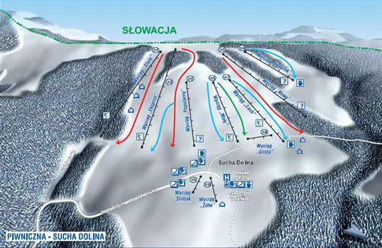 éves Piwnicznát érintetlen természetének, enyhe klímájának és számos gyógyvízforrásának köszönhetően gyógyüdülőnek nyilvánították. Annak idején itt tárolták a Lengyelországba behozott magyar borokat. A Sucha Dolina síközpont zárt, délnyugati szelektől védett völgyben található, amelyet 1000 m magas hegyek vesznek körül, 11 felvonójához kék és piros pályák tartoznak. Leghosszabb pályája 1,5 km 218 m szintkülönbséggel.