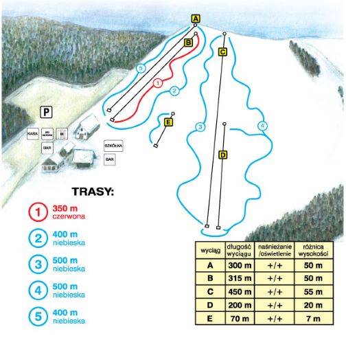 Rybno Lengyelország egy kisebb síterepe, melynek legmagasabb pontja 140 méter. 40 méter szintkülönbséggel és 1,9 km sípályával rendelkezik, melyből 400 m piros, 1,5 km kék. A pályát 6 húzólift szolgálja ki.