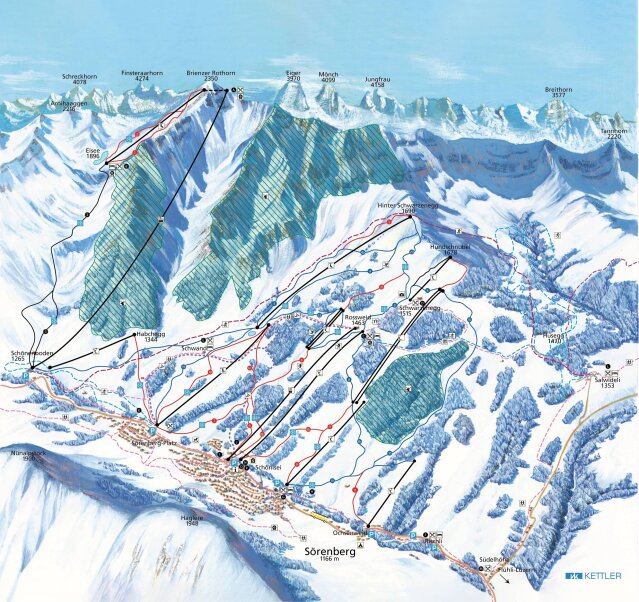 Közepes kiterjedésű (42 km), összefüggő, különböző nehézségi fokozatú pályarendszer, amely főleg kék és piros pályákból áll. Továbbá csodálatos off-pist síelési lehetőség várja a kötöttség nélkül síelésre vágyókat a Rothorn csúcsa alatt. A Rothorn csúcsától induló pályák viszonlyag magas tengerszint feletti elterülésük következtében (legmagasabb pont 2350 méteren, Brienzer Rorthorn), hóbiztos terepnek számítanak egészen április elejéig, és még a szezon vége felé is kiváló porhóban élvezhettük a síelést. A szezon általában december elejétől április elejéig tart. A Rothorn alatti pályák a Rothornbahn felvonójával közelíthetőek meg: főként középnehéz piros és nehéz fekete pályákkal. A Rothornra feljutva érdemes a felvonóállomás kilátóteraszáról megtekinteni a Berni Alpok elénk táruló sziluettjét megkoronázva az Eiger-Mönch-Jungfrau triászával, az Aare-völgyet, illetve a türkiz színben pompázó Brienzi tavat.