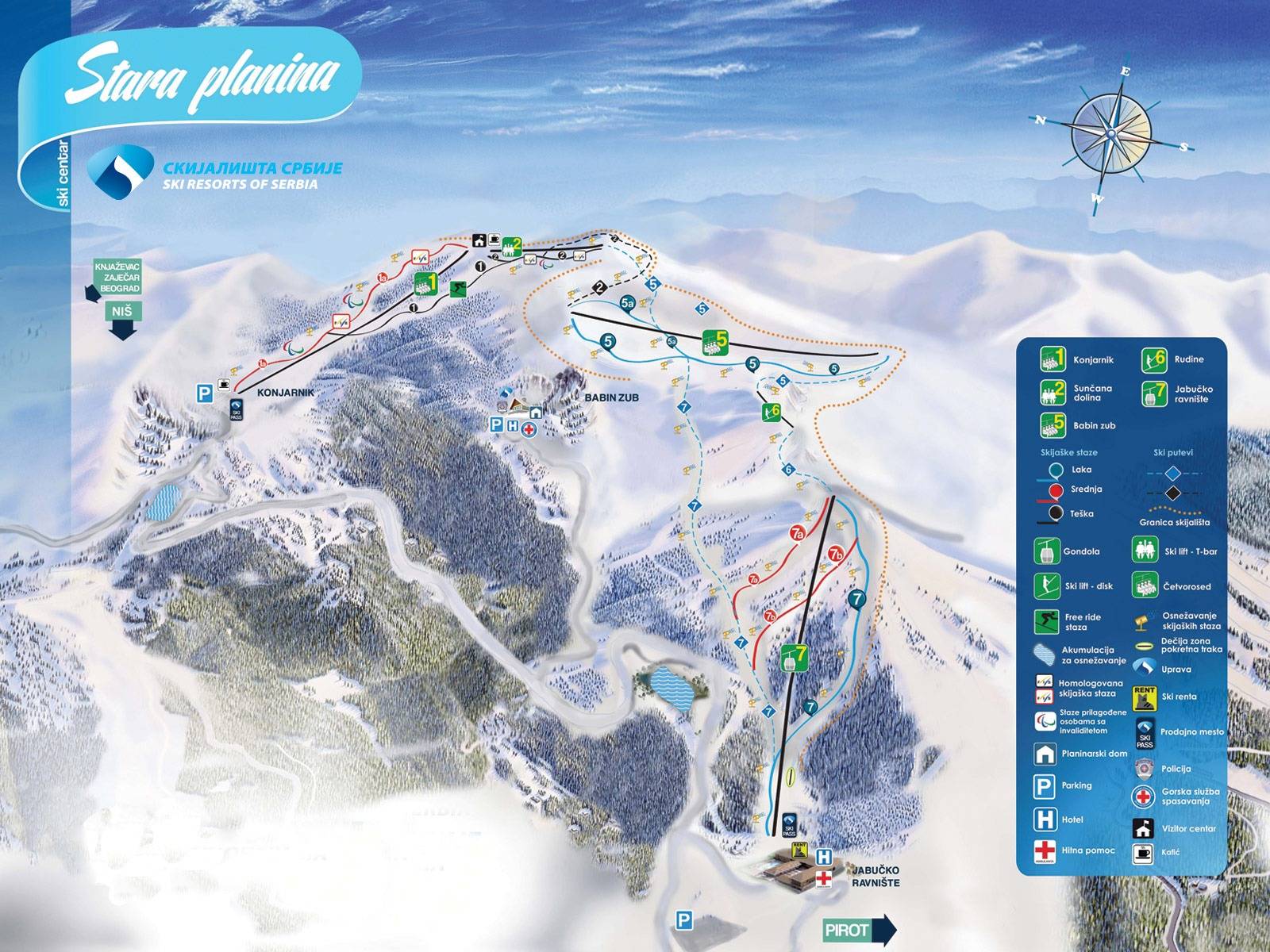 Stara Planina - Babin Zub Szerbia egy síterepe, melynek legmagasabb pontja 1758 méter. 518 méter szintkülönbséggel és 13 km sípályával rendelkezik, melyből 3 km fekete, 3 km piros, 7 km kék. A pályarendszert összesen 6 darab felvonó szolgálja ki, közülük 1 kiskabinos lift, 2 ülőlift, 3 húzólift.