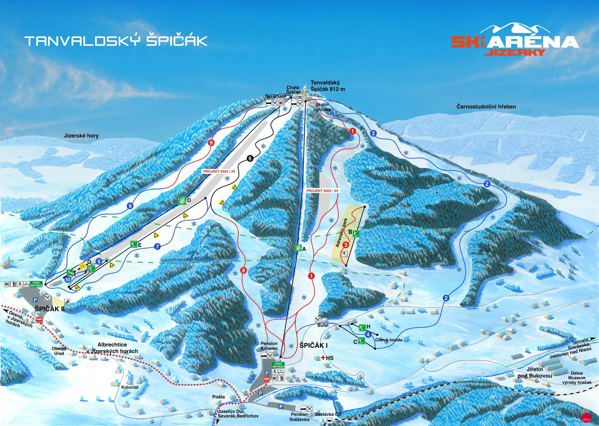 A kicsi, de modern síközpont Liberec városától nyugati irányban, 30 km-re található. 2018-ban egy újabb négyüléses liftet helyeztek forgalomba, aminek köszönhetően a síterep kapacitása jelentősen növekedett. A síközpont könnyű és közepes nehézségű pályákkal rendelkezik, ezek teljes mértékben hóágyúzhatók, így csapadékban szegény időben is sízésre alkalmasak a pályák.