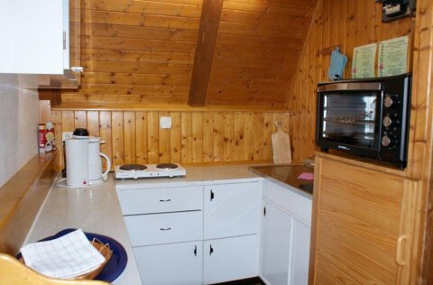 Földszint: nappali étkezősarokkal, kandallóval és TV-vel, kis hálószoba 2 ággyal, fürdőszoba zuhannyal / mosdóval / WC-vel, kis konyha (felszereltsége: 25 literes kis sütő, hűtőgép, vízforraló, filteres kávéfőző, elektromos főzőlap, étkészlet), balkon.