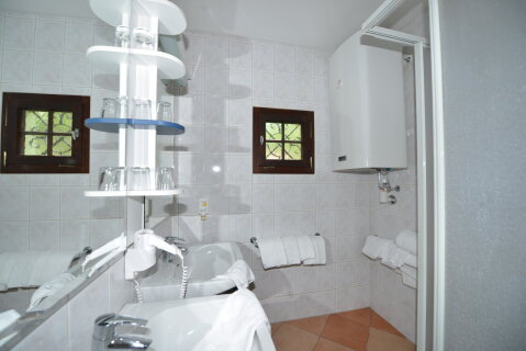 Felszereltség: Nappali 2 ággyal, konyhasarok (kerámialapos tűzhely, vízforraló, mikró, mosogatógép), étkezősarok, fürdőszoba (zuhanyzó, hajszárító, WC), TV (magyar kereskedelmi adókkal is), szobai széf. Azonos nagyságú és beosztású apartmanok, ahol „A” hálószobája egyágyas, „B” hálószobája 2 ágyas (emeletes ágy van). A cserépkályha csak dekoráció!