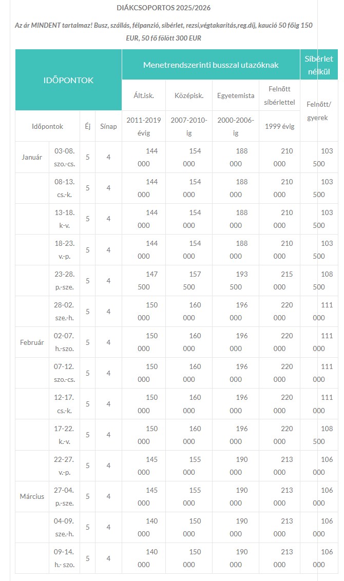 Síoktatásról, síbérlésről érdeklődjön irodánkban, vagy figyelje weboldalunkat!