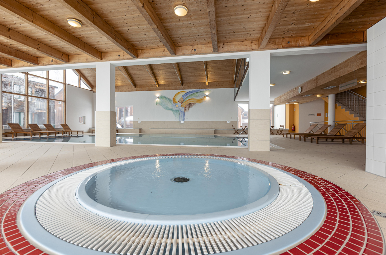 Fedett úszómedence, külön gyermekmedence, finn- és aromaszauna, valamint pihenőszoba áll a vendégek rendelkezésére.
