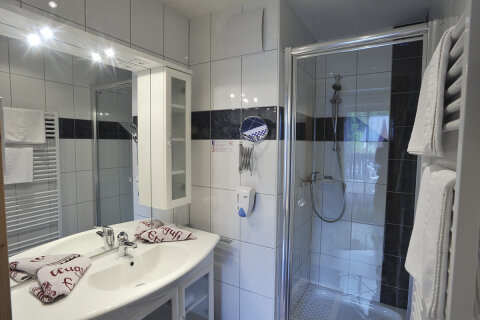 Kétágyas szoba kihúzható ággyal zuhanyzó/WC, hajszárító, telefon, rádió, kábel-televízió, széf.