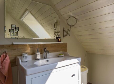 80 m2 tágas nappali, 14 fős étkező, felszerelt konyha áll rendelkezésre az alsó szinten, a tetőtérben pedig a hálószobák kerültek kialakitásra, két fürdőszobával. A hálószobák közül háromban franciaágy, háromban két egyszemélyes ágy található.