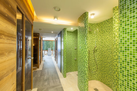 finn szauna, infraszauna és gőzkabin várja a felfrissülni vágyókat, három élmény-zuhany és kényelmes pihenőágyak teszik teljessé a kikapcsolódást. A külső teraszon friss levegőt szívhatnak és lehűthetik magukat a vendégek szaunázás után.