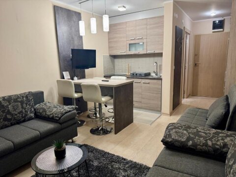 Két hálószobás apartman, nappalival, étkezővel és konyhával, fürdőszobával. Egyik hálószoba franciaágyas, a másik szobában egy kihúzható kanapé. A konyhában főzőlap, sütő, hűtő, vízforraló. A lakás rendelkezik egy mini szaunával.