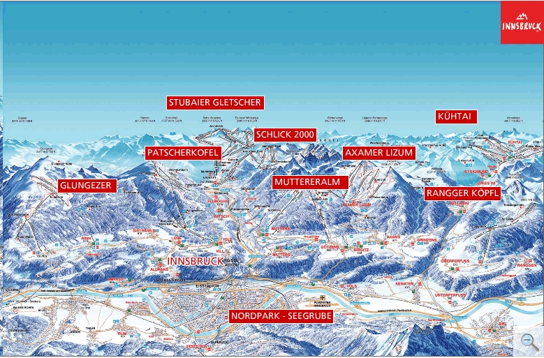 Az innsbrucki pályarendszer legközelebbi és legtávolabbi tagja 15, illetve 60 percnyi ingyenes síbuszozással érhető el a téli olimpiai városból.
