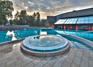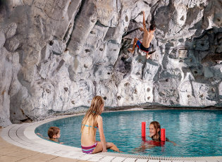 - Uszodai részleg: nagymedence, gyermekmedence, pezsgőfürdő, csúszda, sodrófolyosó, zenebarlang, szerelembarlang, mászófal, külső napozóterasz