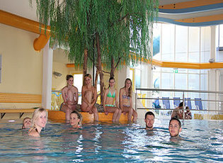 - Szabadtéren: 25 m hosszú és 4 m mély nagymedence, ugródeszka, sodrófolyosó, pezsgőfürdő és egyéb élményelemek.