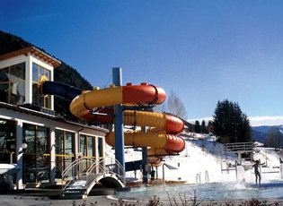 A kellemes környezet ideális kikapcsolódást és feltöltődést nyúlt egy síelés után. A fűtött kinti masszázsfúvókás medencében még a téli időben is szabad ég alatt lehet úszni. A vállalkozóbb kedvűek kipróbálhatják a 80 méter hosszú "fekete lyuk" csúszdát. A fürdő szaunarészlegében a klasszikus finn szauna mellett gőzkabin és bio-szauna is várja a vendégeket.