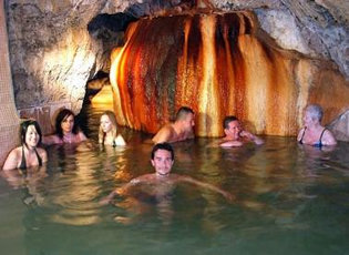 A természetes úton kialakult barlangban lévő víz közvetlenül a sziklák közül előtörő termálforrásból származik, csak enyhén hűtik le, hogy megőrizzék az ásványi összetétel ritka koncentrációját és erősségét, hőmérséklete pedig elfogadható legyen az emberi szervezet számára. A fürdő nem csak kalciumban és magnéziumban gazdag, hanem más ritka ásványi anyagokban is, ami ajánlottá teszi a benne való tartózkodást mozgásszervi megbetegedésekben szenvedők számára is.